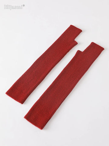 Women’s Long Knitted Fingerless Gloves – Y2K Thermal Arm Warmers 40–60 cm
