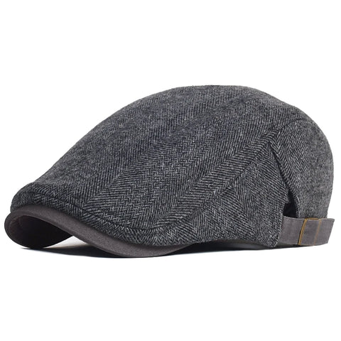 Big Size Newsboy Cap Men Winter Wool Thick Warm Vintage Herringbone Casual Stripe Berets Gatsby Flat Hat Peaked Cap Adjustable