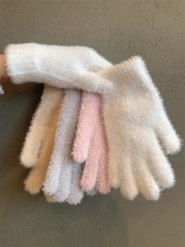 Women’s Plush Mink Velvet Gloves – Warm Five-Finger Winter Wear